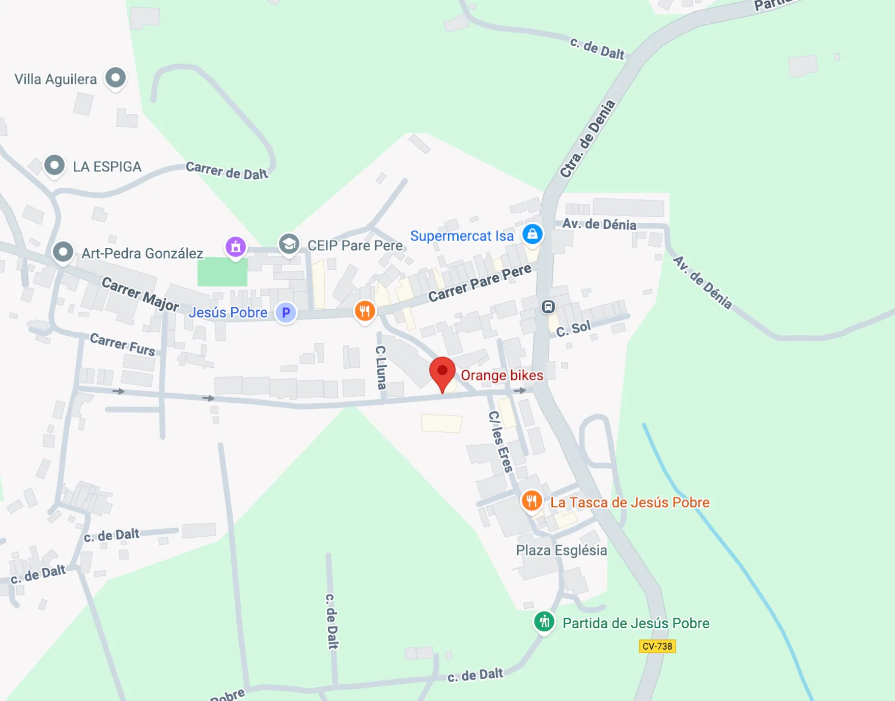 Visit Orange bikes in the charming village Jesus Pobre (Denia).